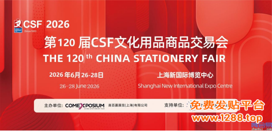 2026中国文化用品商品交易会(简称CSF文化会)将在上海新国际博览中心盛大开幕。是文化和办公用品行业领先的国际性盛会之一,由高百赢展览(上海)有限公司主办,中国百货商业协会支持。诞生于1953年的CSF文化会,经过70余年的不断扎根与沉淀发展,已成为全球聚焦的行业盛会,大会汇聚得力、英雄、晨光等头部品牌企业参展,展出规模达9万平米。2026年6月26日大会以创规模、创新品、创理念的全新模式,再次汇聚全球文化用品上下游产业链共聚行业盛会。
